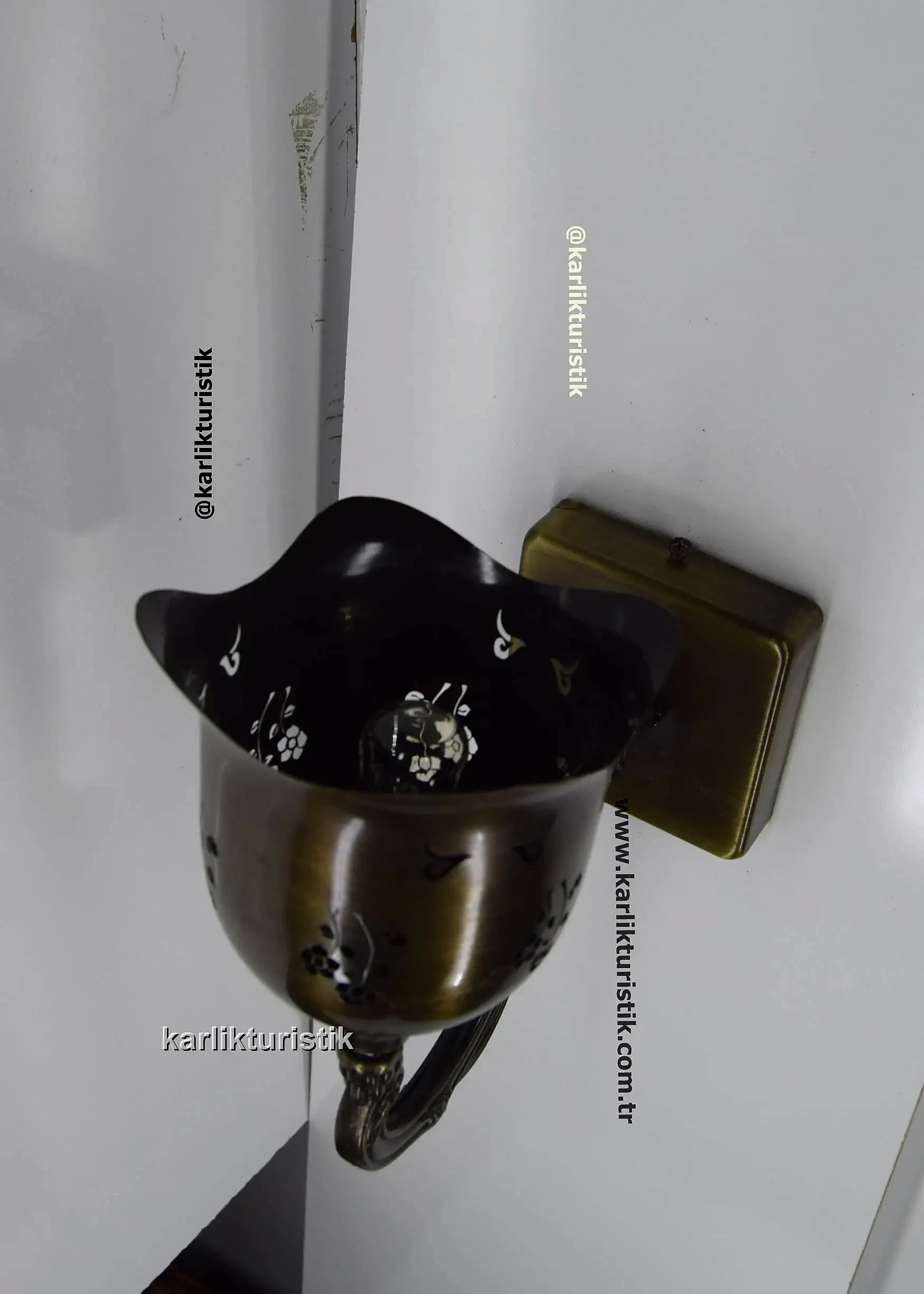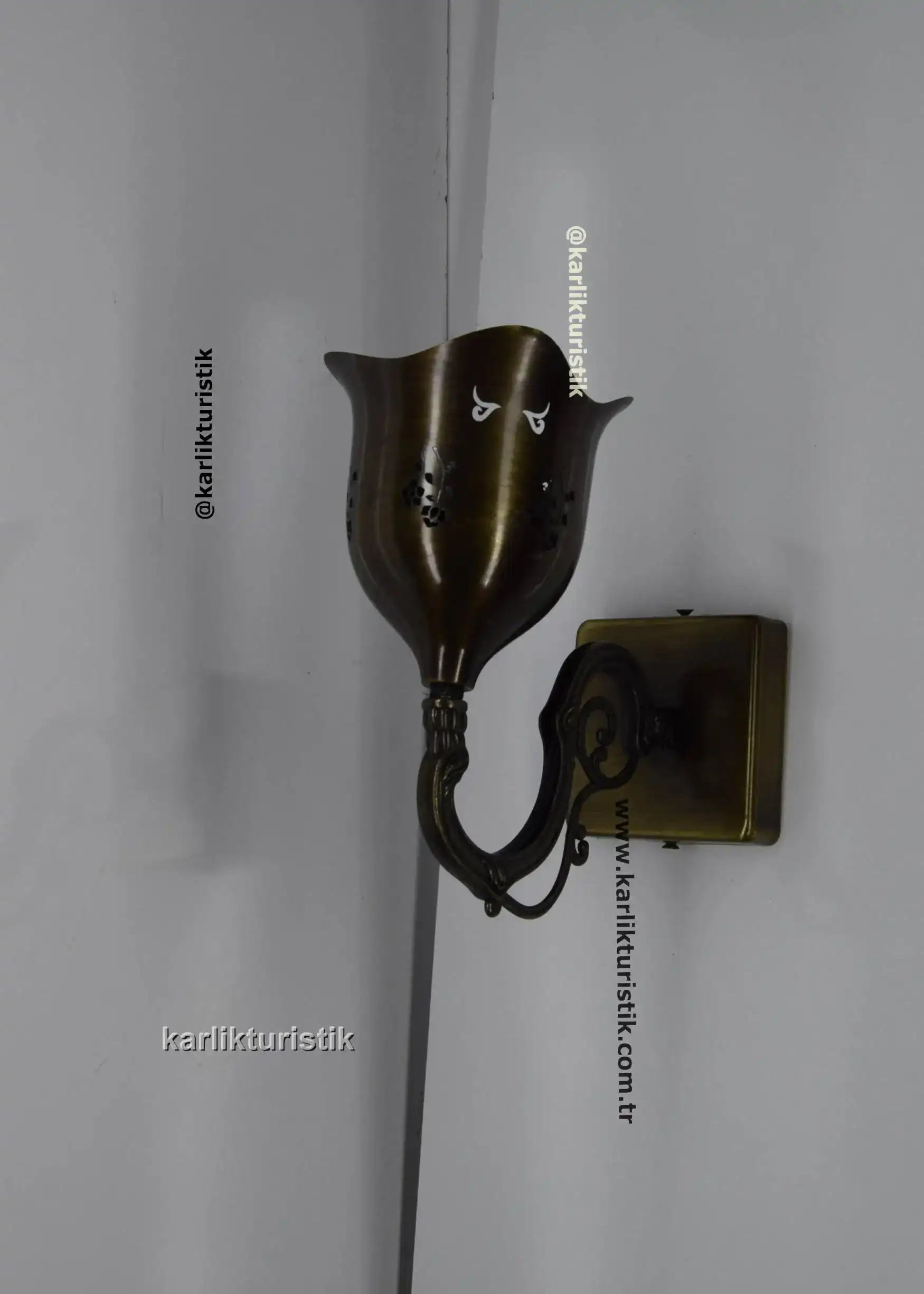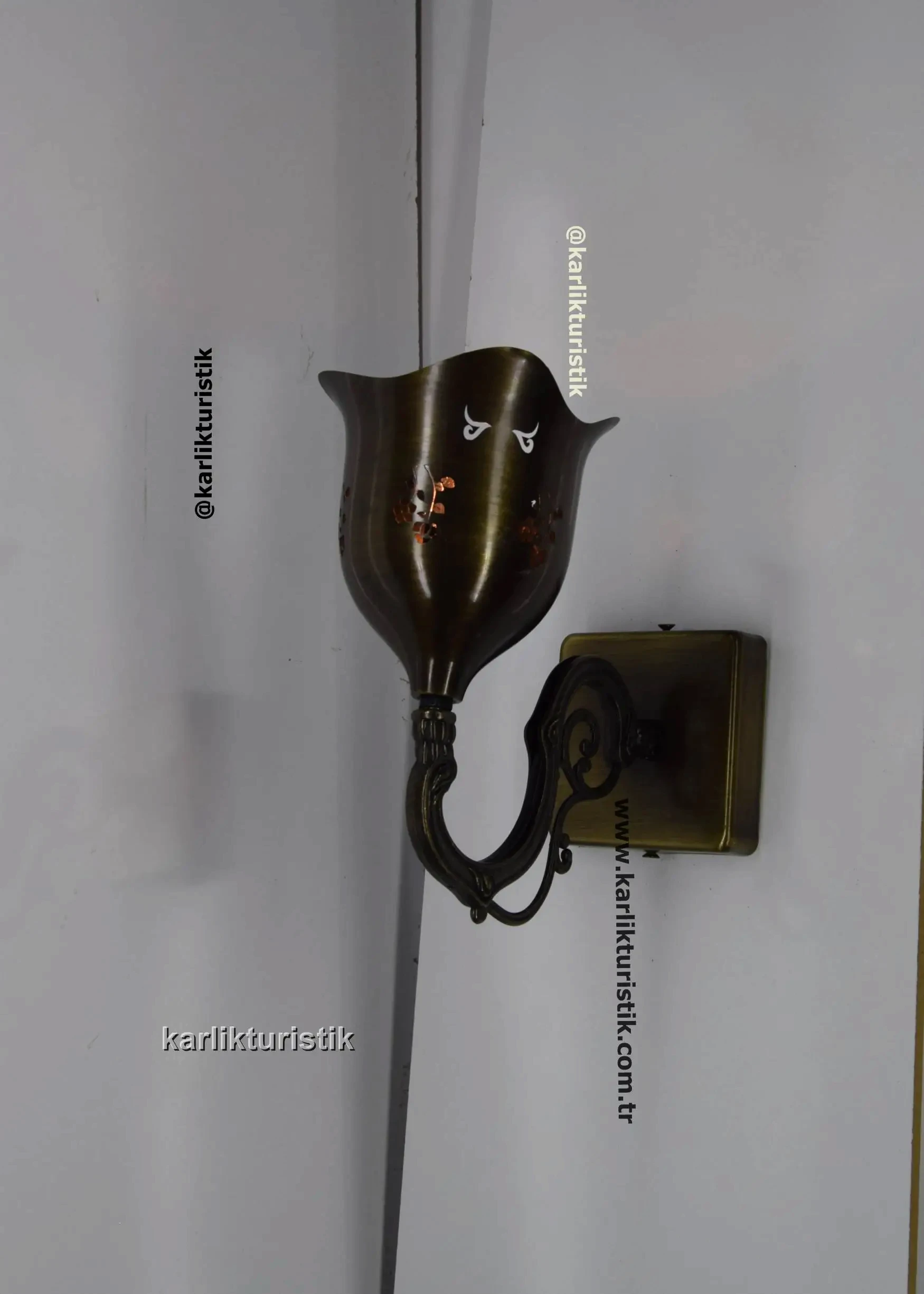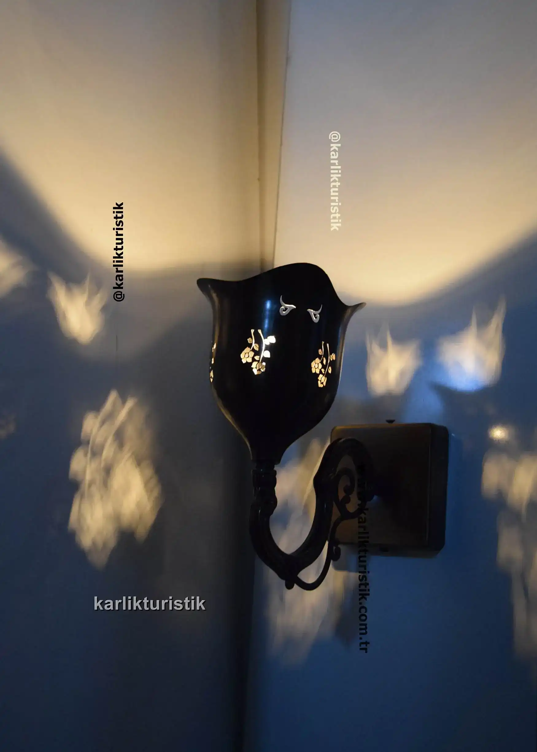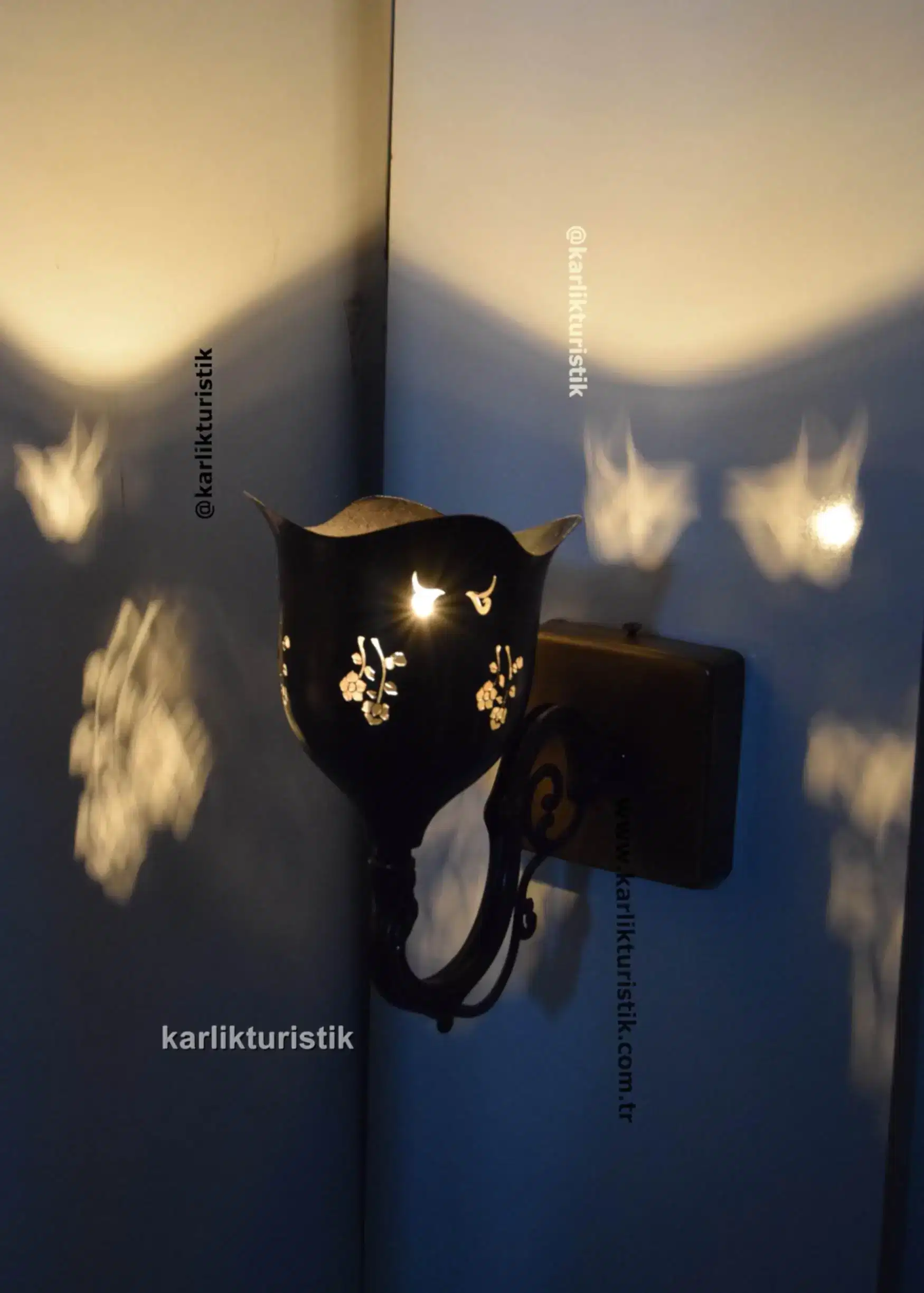 Ürün Tanıtımı: Metal gövde üzerindeki zarif çiçek motiflerinden süzülen ışık, duvarda büyüleyici gölge oyunları yaratır. Geleneksel lale formunun modern metal işçiliğiyle yorumlandığı bu model, aydınlatmadan ziyade bir duvar sanatı görevi görür.