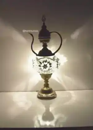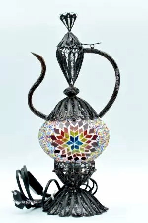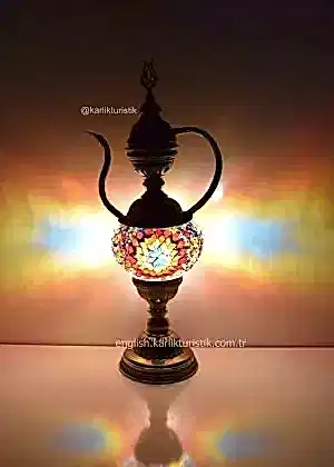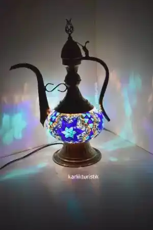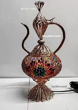 Masa üstü, komodin gibi farklı alanları süsleyen mozaik ibrik lambalar alaturka ve otantik tarz severler için tasarlanmıştır. Osmanlı ve Selçuklu gibi pek çok medeniyet tarafından kullanılan mozaik sanatı ile ibrik görüntüsünün birleştiği mozaik ibrik lambalar her yönüyle o eski dönemlerin izlerini taşımaktadır. Mozaik camların arasından sızan renkli ışık huzmeleri loş ışık sevenlerin de hoşuna gidecektir. Yatak odası, dinlenme alanı, çalışma odaları ya da kitap okuma köşelerinde gözleri yormayan loş ışık kaynakları olarak kullanılabilirler. Mozaik ibrik lambalar, mozaik camlarla işlenen rengarenk görüntünün, kahverenginin asaleti ile bütünleştiği bakır telkari ve metal sıvama kulplardan üretilmektedir. Karlık Turistik olarak tamamen el yapımı ve evinizin her köşesinde kullanmak isteyeceğiniz mozaik ibrik modellerini çok seveceksiniz. Benzersiz alternatiflerle mozaik ibrik lamba (mozaik masa üstü lamba) modellerine sahip olmak için bizimle iletişime geçebilirsiniz.