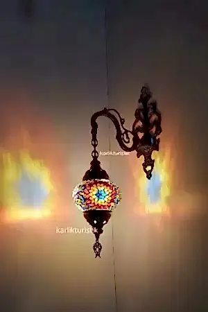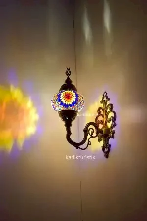 Duvar lambası (duvar şamdanı) olarak da bilinen aplikler, her dekorasyon stiliyle bütünleşecek tasarım çeşitliliğine sahiptir. Yaşam alanınızda göz alıcı aydınlatmalardan destek alarak şık bir tarz oluşturmak için kişisel zevklerinizi yansıtan aplik modellerini tercih edebilirsiniz. Mozaik Aplik tasarımları kullanılan ortamlarda otantik ve klasik bir görüntü oluşturur. Mozaik tekli aplikler, aynı tarzdaki vintage mobilyalarla mükemmel bir uyum yakalamaktadır. Otantik görünüm sevenler için birbirinden şık duvar lambası seçenekleri Karlık Turistik’in geniş ürün yelpazesinde yer bulmaktadır. Mozaik camlarla işlenen rengarenk lambalar, kahve renginin asaleti ile bütünleştiği bakır telkari ve metal sıvama kulplarla mükemmel uyum sağlamaktadır. Yatak odası, dinlenme alanı veya kitap okuma köşelerinde gözleri yormayan loş ışık kaynakları kullanılmaktadır. Mozaik tekli aplikler, loş ışık severler tarafından da sık tercih edilmektedir. Bahçeniz için seçeceğiniz mozaik aplik modelleri bohem, otantik ya da şık bir görüntünün anahtarı olmaktadır. Balkon ve teraslarda kullanılacak modeller de ambiyansın farklılaşmasını sağlamaktadır. Aşağı yönlü ve yukarı yönlü olarak ürettiğimiz mozaik tekli aplik modelleri ile dekorasyonlarınıza uygun renkte ve modelde mozaik aplikleri firmamızda bulabilirsiniz. Benzersiz alternatiflerle mozaik aplik (duvar lambası) modellerine sahip olmak için bizimle iletişime geçebilirsiniz.