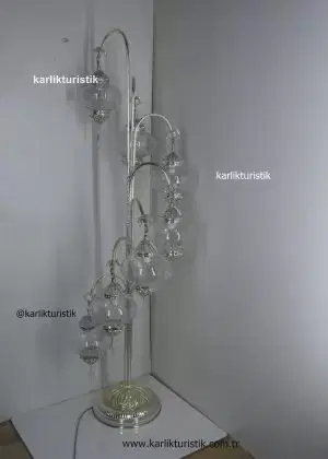 Lambader Şeffaf Cam Çatlatma Desen, Otantik Ayaklı Lamba 10 camlı, Osmanlı Tarzı Lambader Gümüş Kaplama Özel Seri