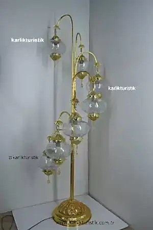 Lambader Şeffaf Cam Çatlatma Desen, Otantik Ayaklı Lamba 7 camlı, Osmanlı Tarzı Lambader Altın Kaplama Özel Seri Telkari Bakır