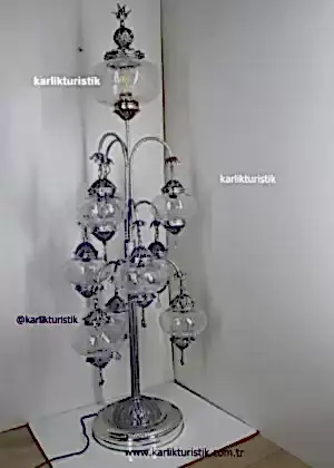 Türk Lambası Ayaklı 11 Küre Bakır Telkari Gümüş Kaplama Osmanlı Kırık Camlı, Türk Lambası Kırık Desenli,Türk Lambası Şeffaf Cam