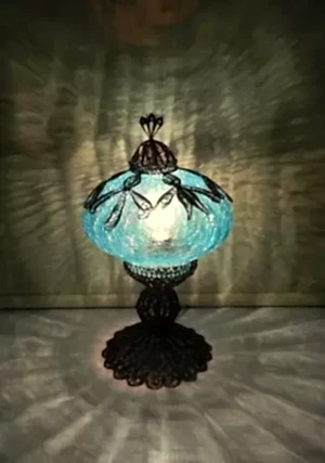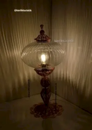 No5 Şefaf Çatlatılmış Cam Bakır El Emeği Telkari Masa Lambasi – F-T-230