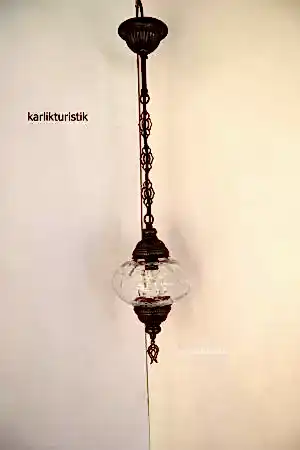 Osmanlı döneminde kullanılan motifleri yaşam alanlarında görmekten hoşlanıyorsanız Osmanlı tekli sarkıt lambalar tam olarak size göre diyebiliriz. İnsanların büyük bir bölümünün geçmişleri ile alakalı figürlerle karşılaşmaktan hoşlanmaktadır. Osmanlı motifleri de bunlardan biridir. İç ve dış mekanları görsel anlamda zenginleştiren Osmanlı tekli sarkıtlar ile ortamınızı kandil gibi aydınlatmanın yanı sıra aksesuar misali süsleyebilirsiniz. Karlık Turistik olarak tamamen el yapımı ürettiğimiz Osmanlı tekli sarkıt lambalar, evinizin veya işletmenizin her köşesinde kullanmak isteyeceğiniz göz alıcı modelleri firmamızda bulabilirsiniz. Kavun, top, ufo, mermi şeklinde farklı ebatlardaki çatlatılmış cam kullanılarak tasarladığımız Osmanlı tekli sarkıt lamba modelleri sitemizde beğeninize sunulmaktadır. Ürünlerimizde kullandığımız camlar solma yapmamaktadır. Bakır telkari ve metal sıvama kulp ile üretimini yaptığımız lambalar paslanmaz özellikte olduğundan uzun yıllar kullanılabilmektedir. Ayrıntılı bilgi ve siparişleriniz için bizimle iletişime geçebilirsiniz.