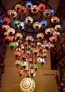 Otantik renkli cam avizeler, iç mekanlara estetik bir dokunuş ve sıcak bir atmosfer sağlamak için mükemmel bir seçenektir. Karlık Turistlik firması, geniş bir tasarım yelpazesi sunarak müşterilere mekanlarını kişiselleştirme ve güzelleştirme fırsatı sunabilir. Renkli camların büyüleyici görünümü ve el işçiliği detayları ile bu avizeler, her mekana özgün bir tarz katar.